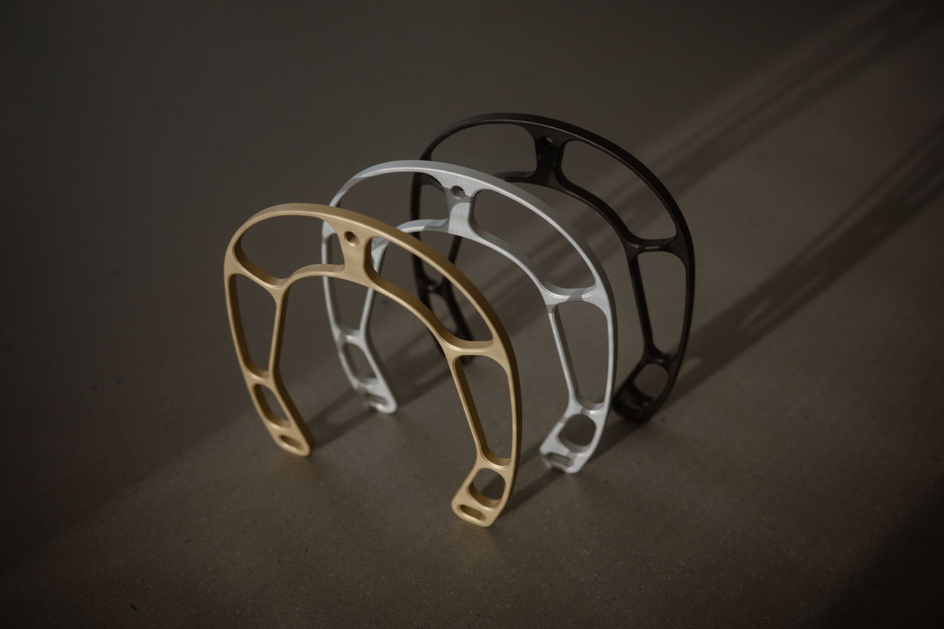 The boosters were inspired by vintage designs I’ve seen through the years and made as Barely There™ as possible, JFF. They are under 1oz each, more of an elegant decoration and nod to the past for your probably-already-too-stiff bicycle. They are an ATB product for sure, made for wide tires: 2.3ish. There will be a printable 1:1 scale drawing linked on the product page so you can determine if they will safely clear your tires/fenders/etc. They are called 2.0 because I previously made a small batch of another version, but they didn’t even make it to the website. Enjoy some process pics of the current style —